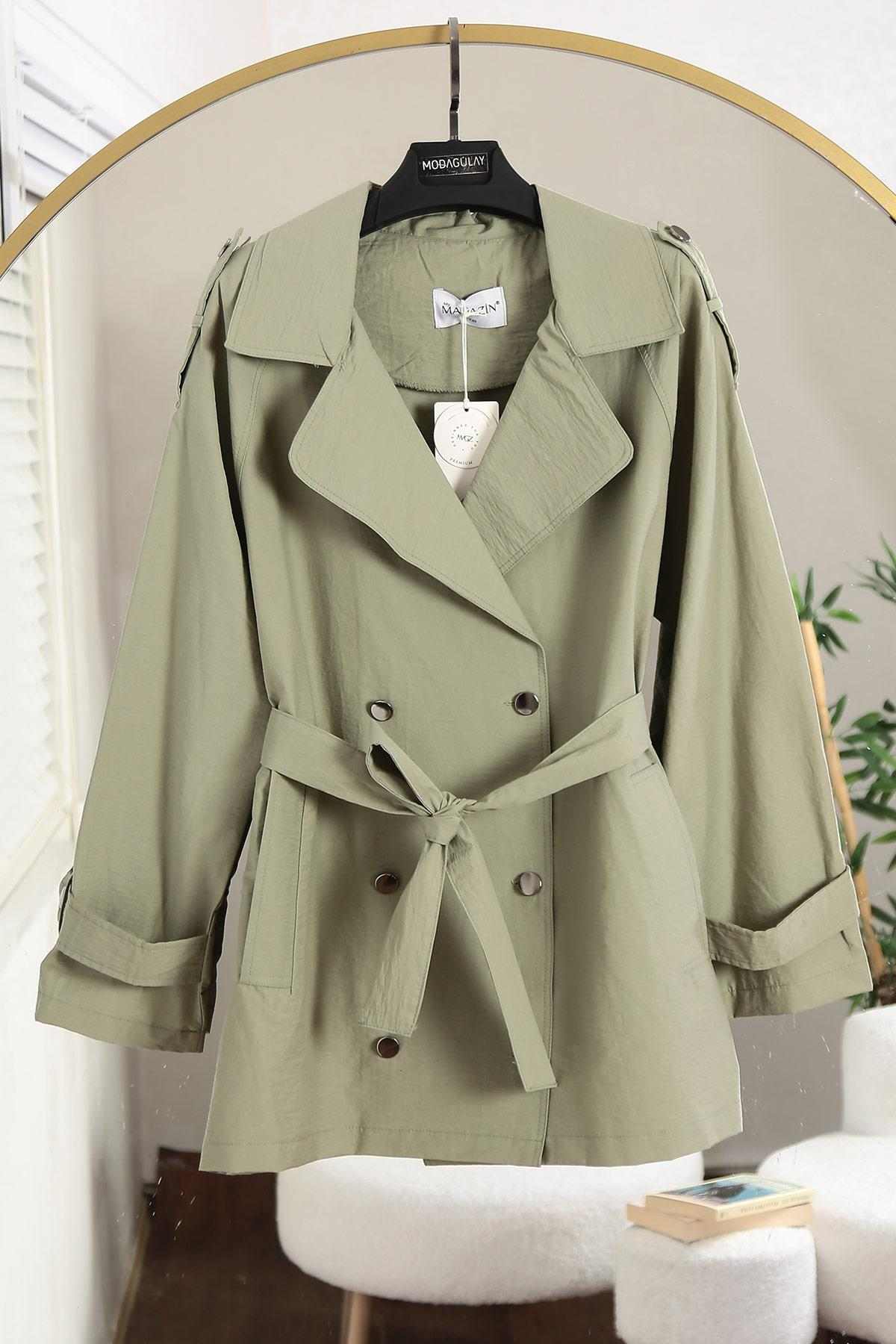 Altı Düğmeli Apoletli Kısa Trenç Haki