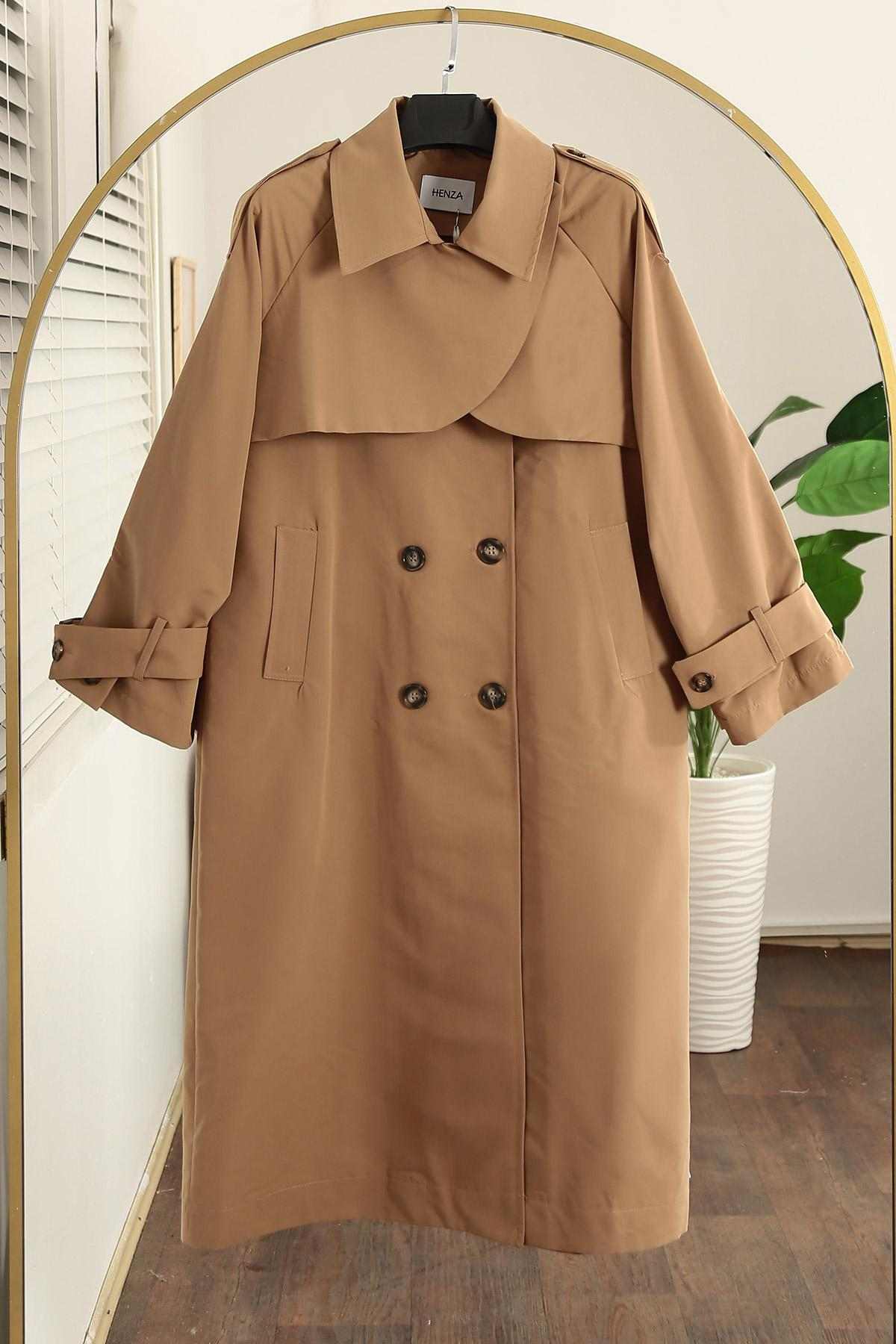 Altı Düğmeli Tokalı Apoletli Oversıze Trençkot Toprak
