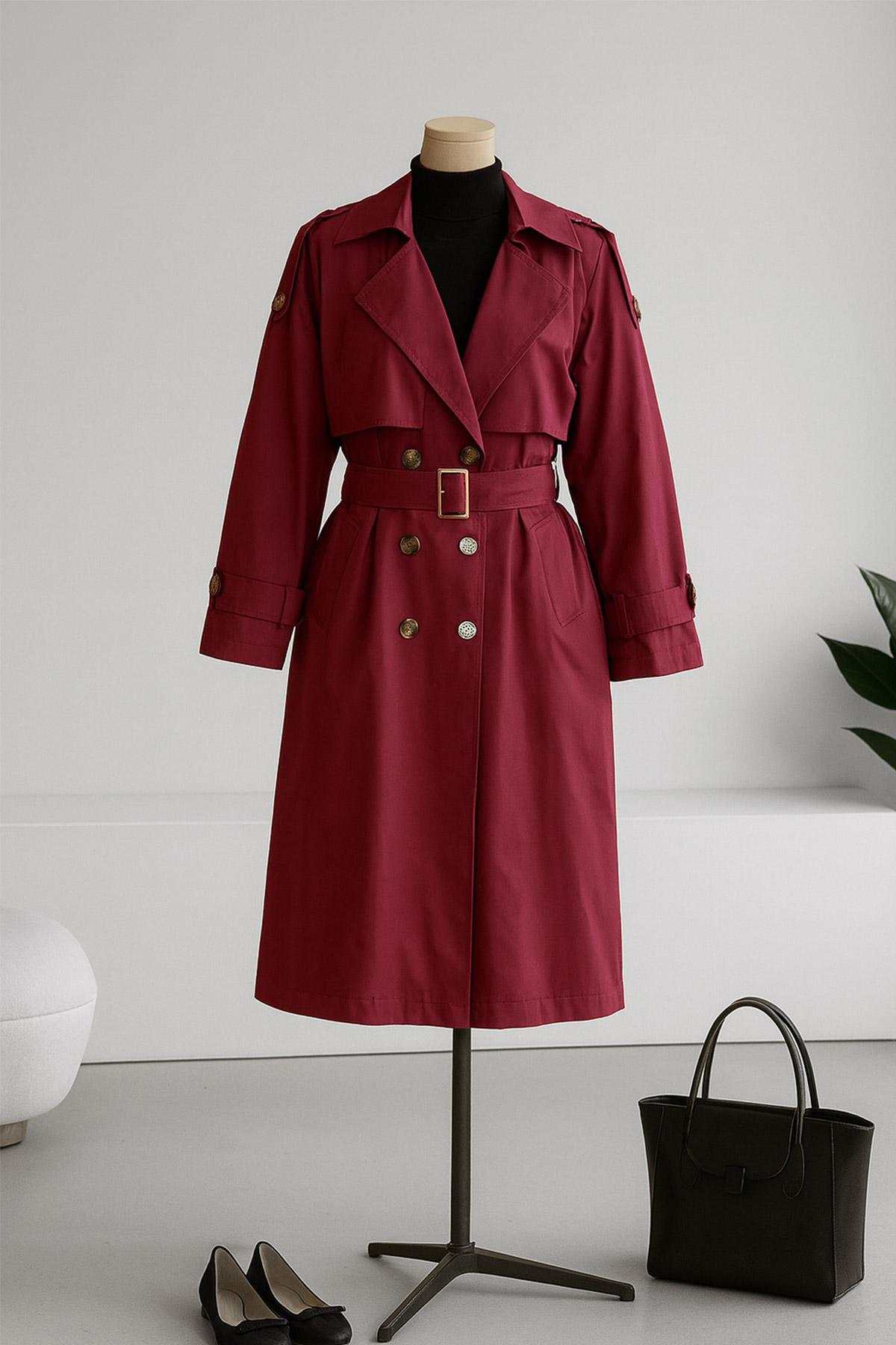 Apoletli Tokalı Altı Düğmeli Parçalı Trençkot Bordo