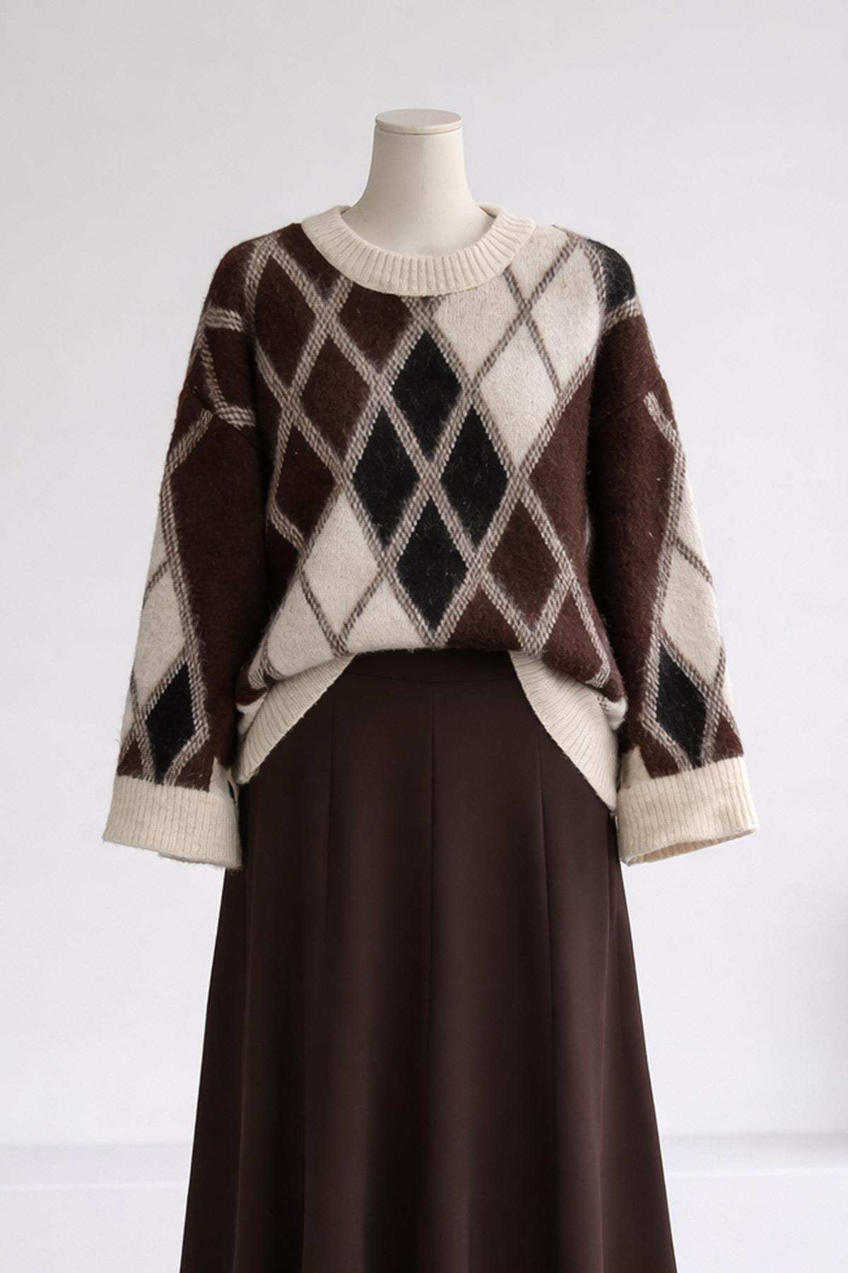 Baklava Desen Kolları Rahat Triko Kazak Bej
