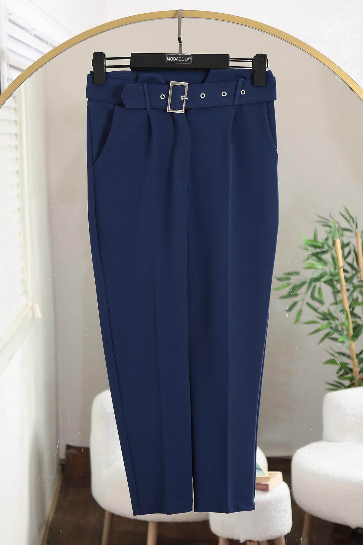 Beli Kemerli Havuç Paça Pantolon İndigo