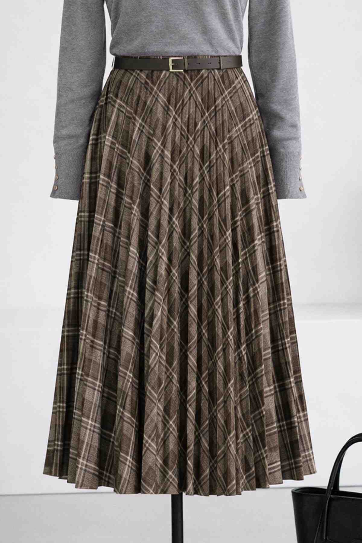 Beli Lastikli Piliseli Kemerli Ekose Kloş Etek Yeşil