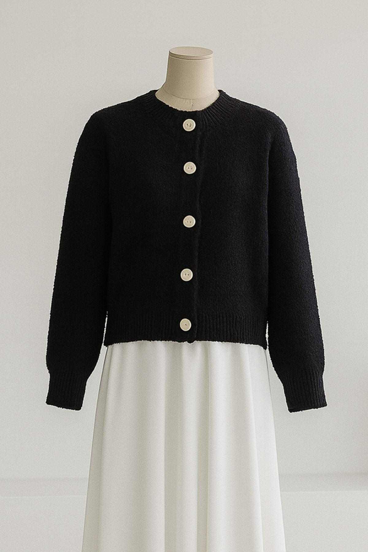 Beş Düğmeli Havlu Triko Hırka Lacivert