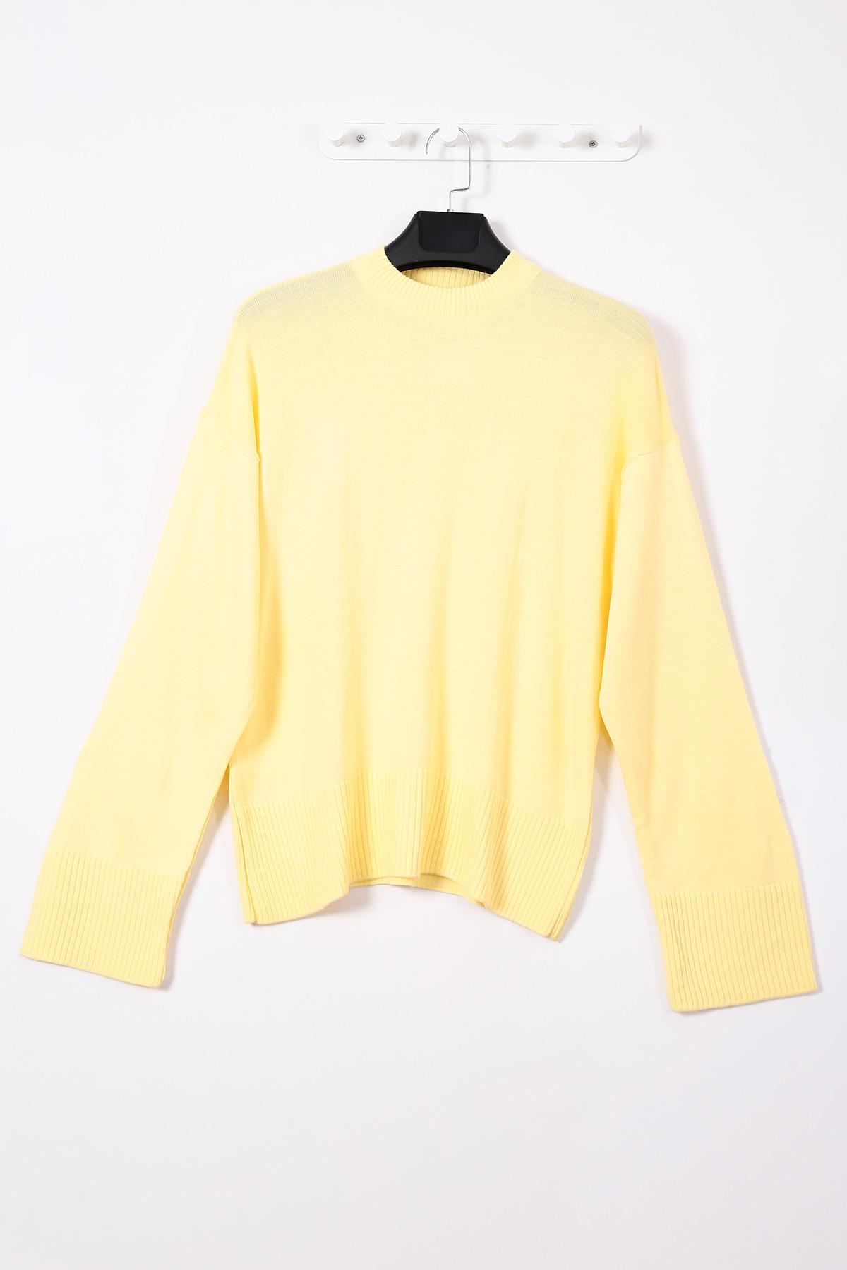 Bisiklet Yaka Basıc Triko Kazak Sarı