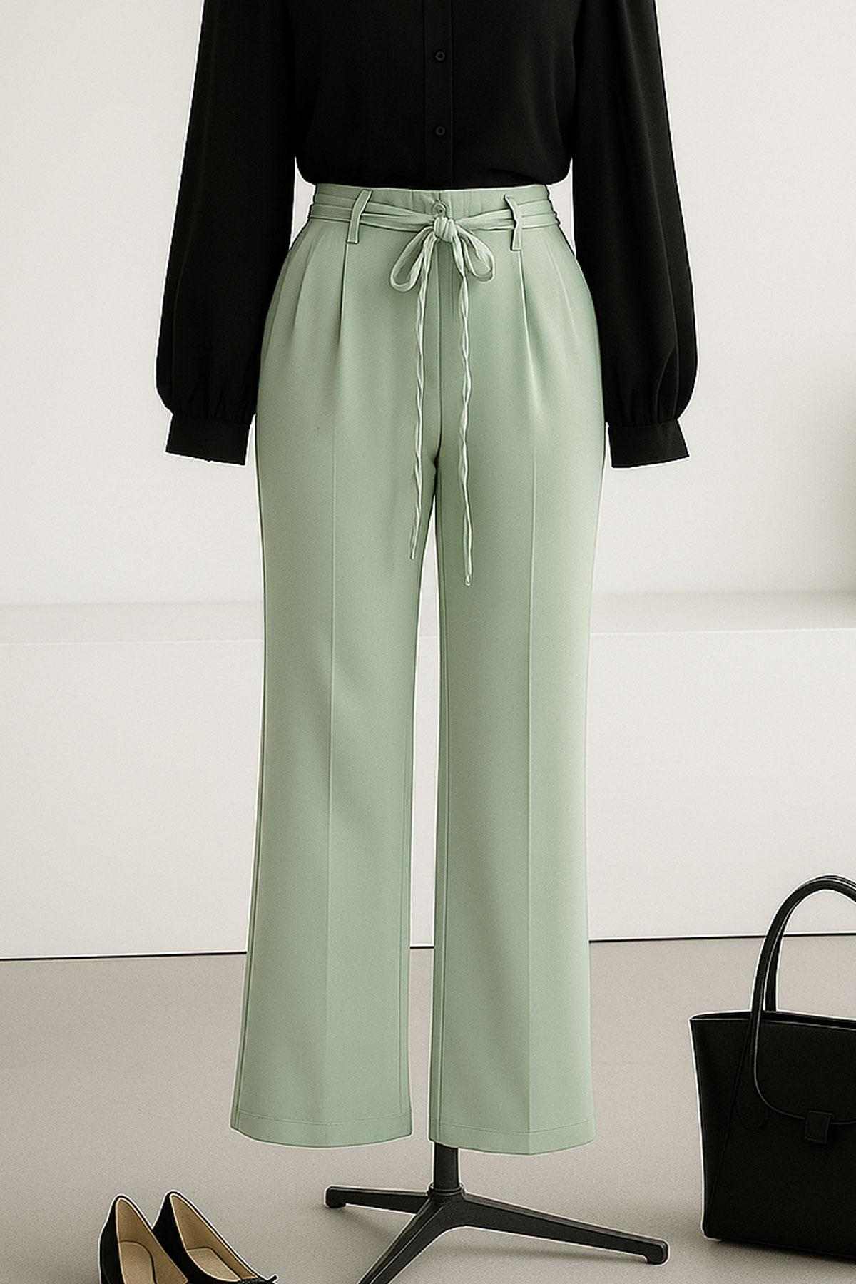 Çift Bağlamalı Bol Paça Dabıl Pantolon Mint