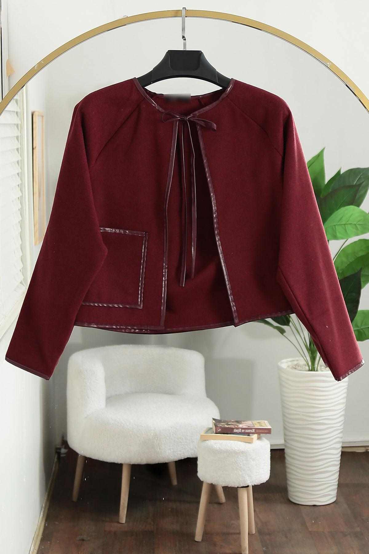 Çift Cepli Biyeli Kaşe Kısa Ceket Bordo