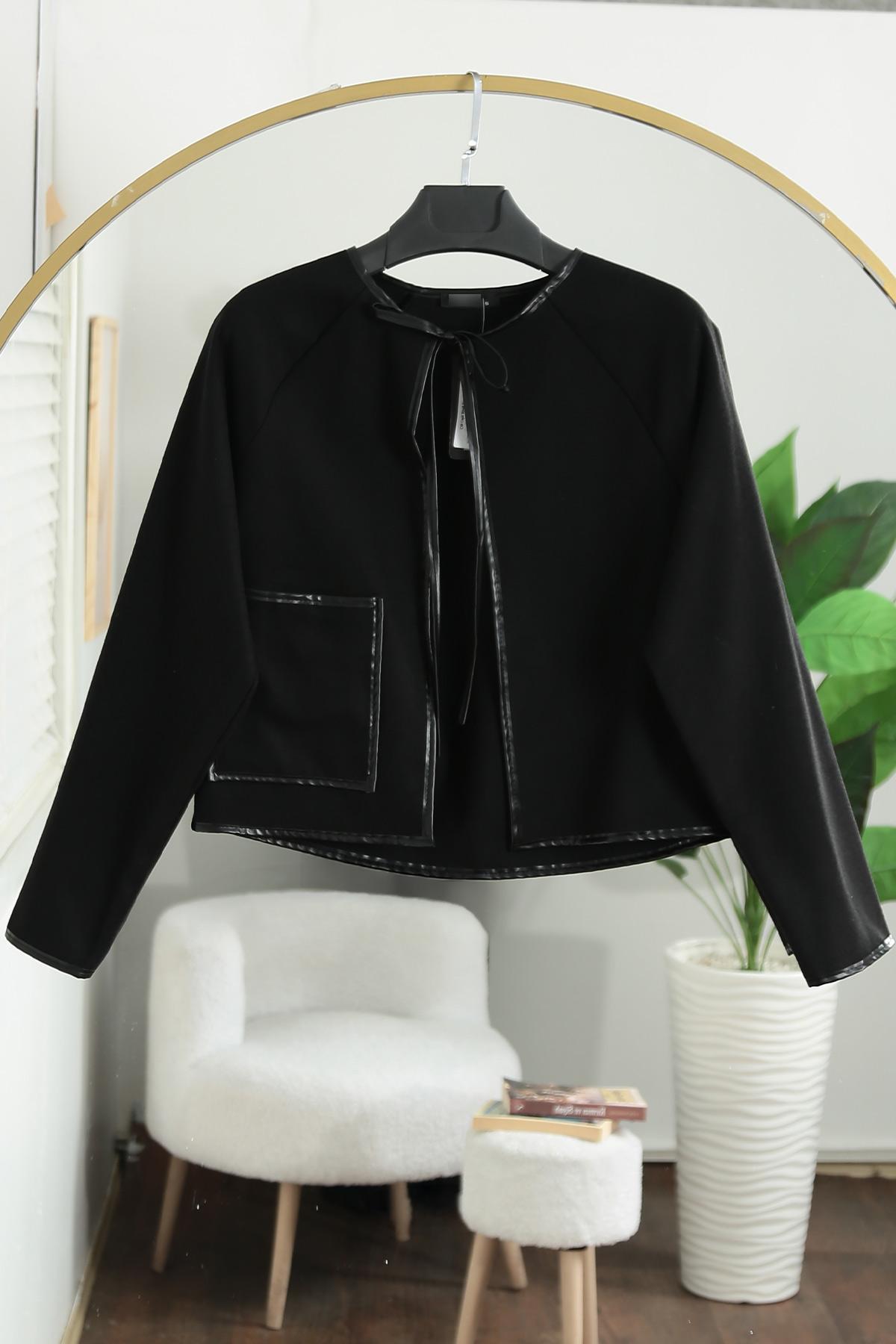 Çift Cepli Biyeli Kaşe Kısa Ceket Siyah