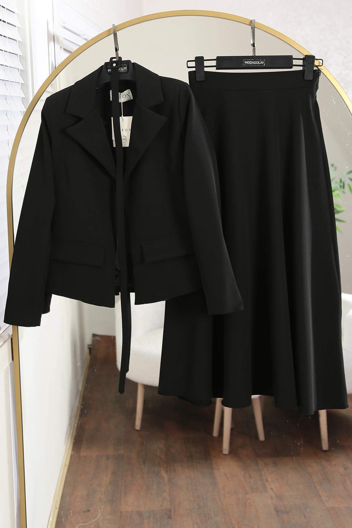 Çift Cepli Kemerli Etekli Dabıl Takım Siyah