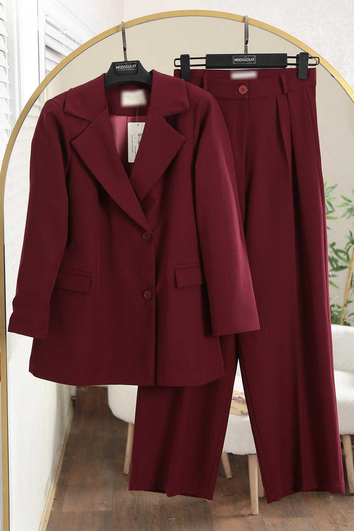 Çift Düğmeli Dabıl Pantolonlu Takım Mürdüm