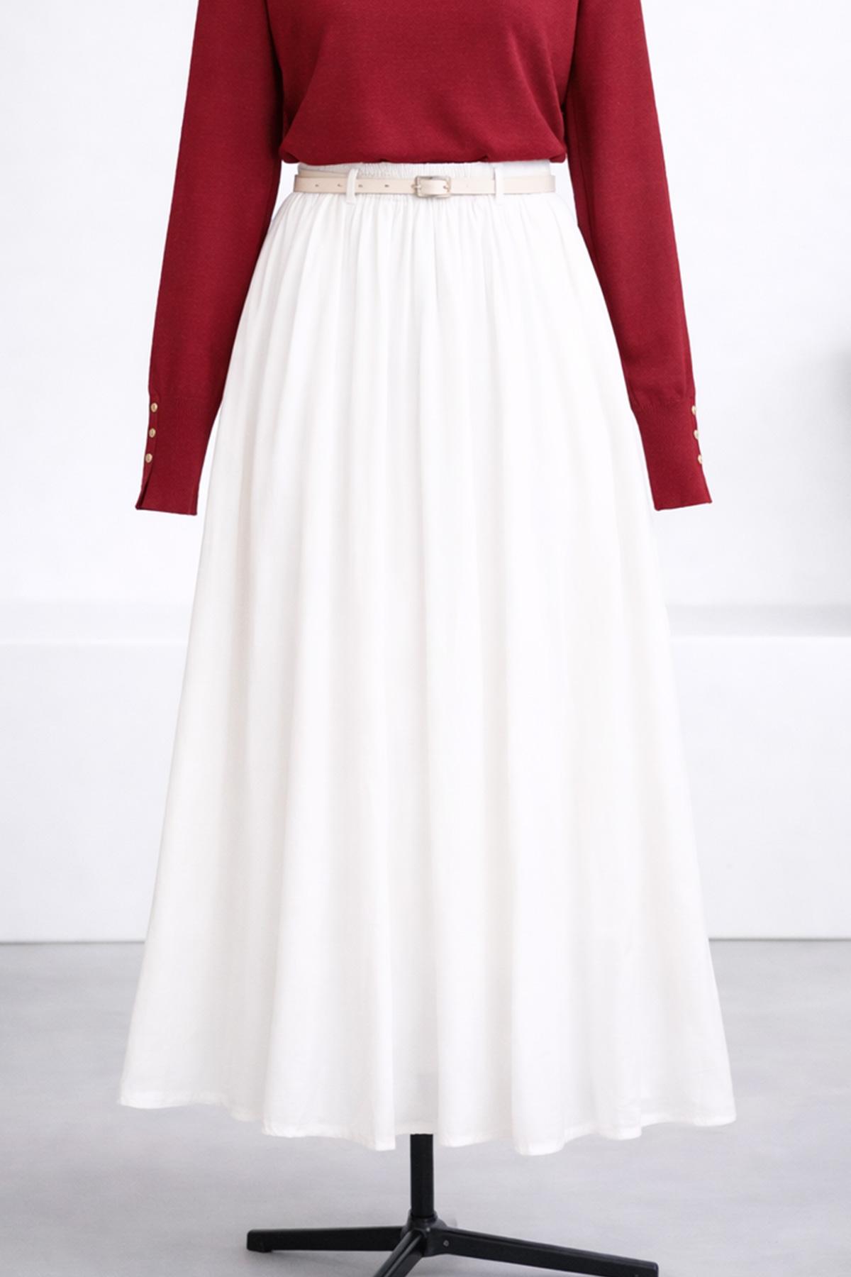 Deri Kemerli Çift Cepli Vual Etek Ekru