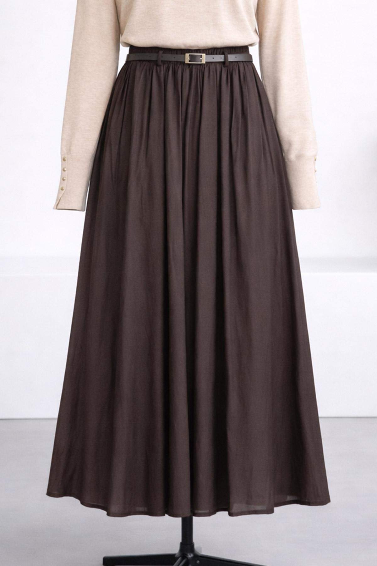 Deri Kemerli Çift Cepli Vual Etek Kahve