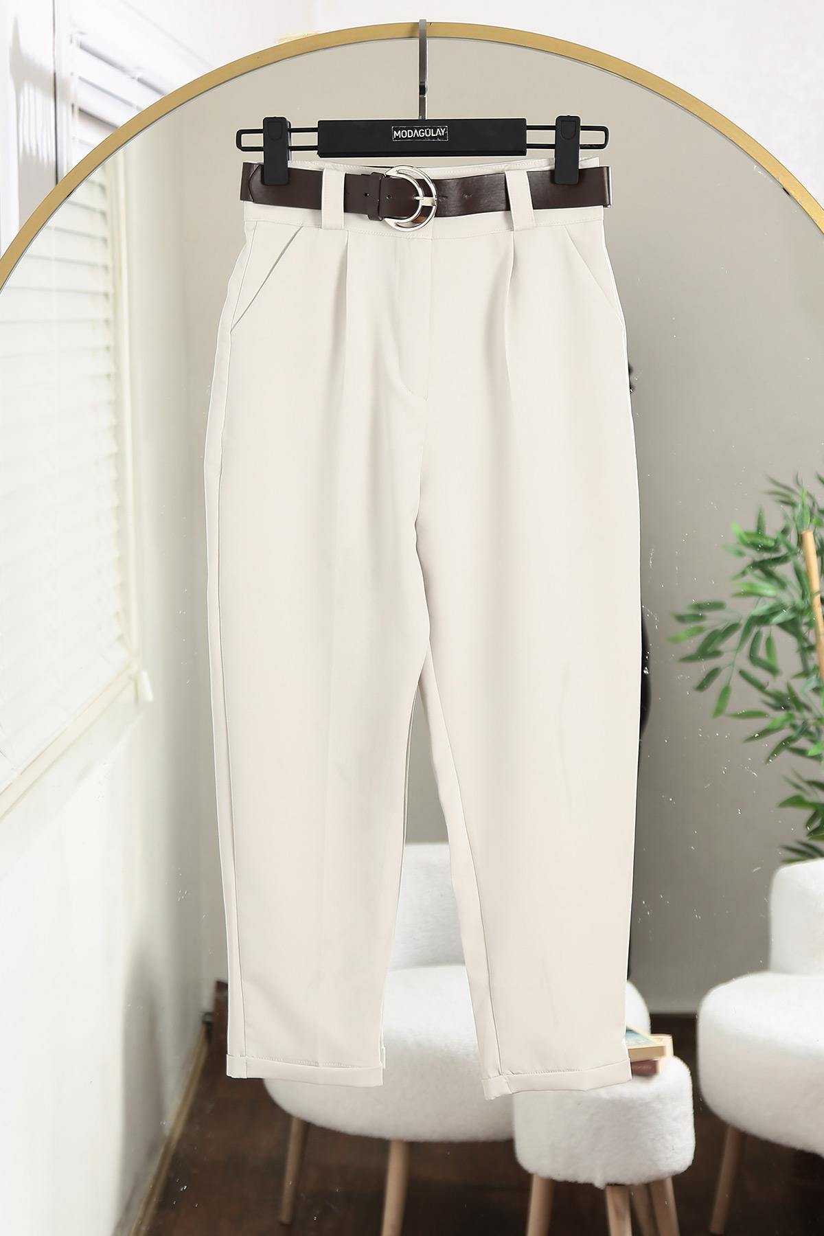 Deri Kemerli Flotolu Dabıl Pantolon Açık Mint