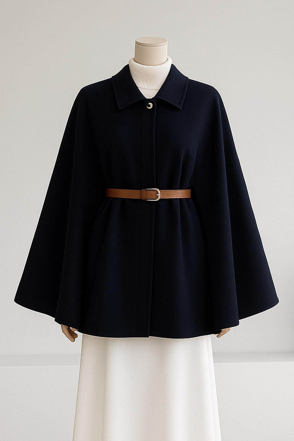Deri Kemerli Oversıze Kaşe Panço Lacivert