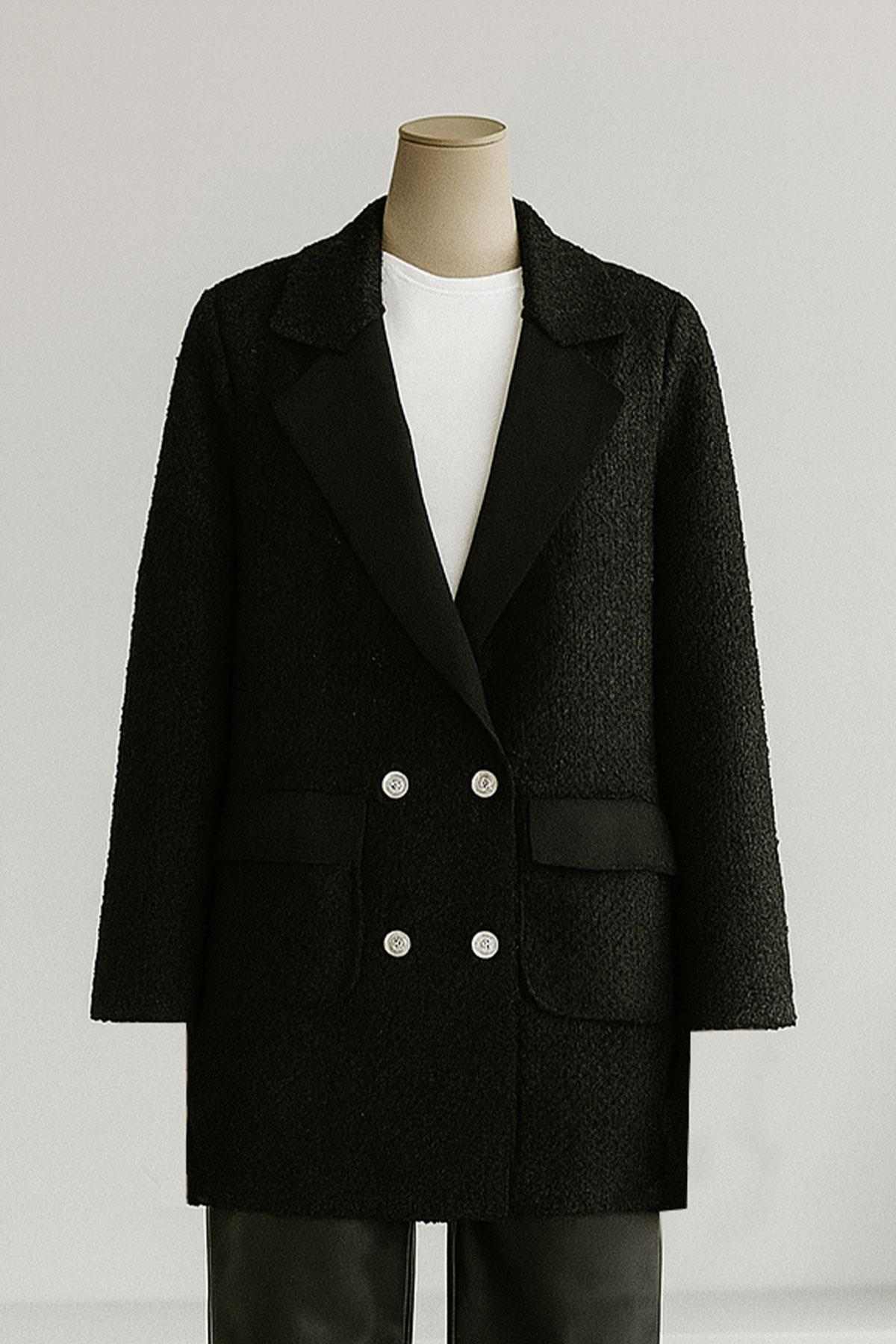 Dört Düğmeli Çift Cepli Buklet Ceket Siyah