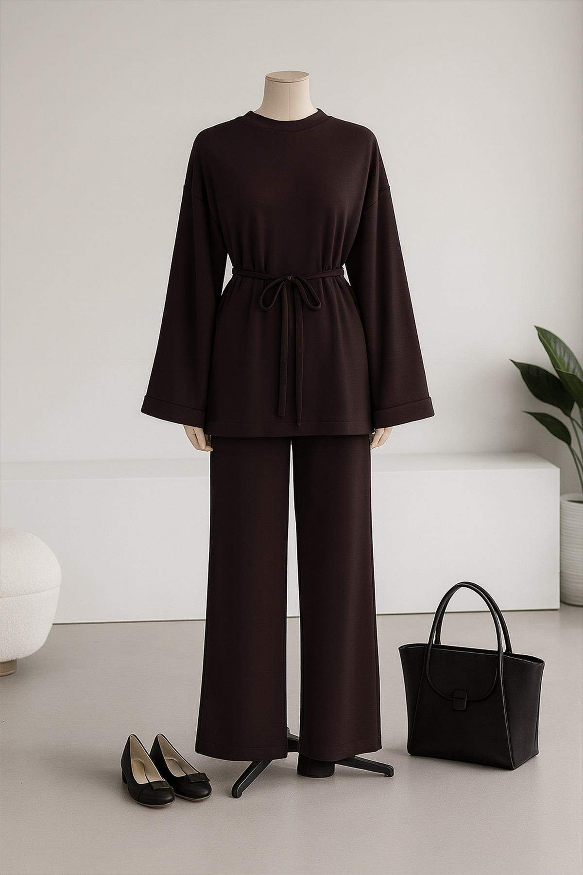 Duble Kol Yırtmaçlı Pantolonlu Oysho Takım Koyu Kahve