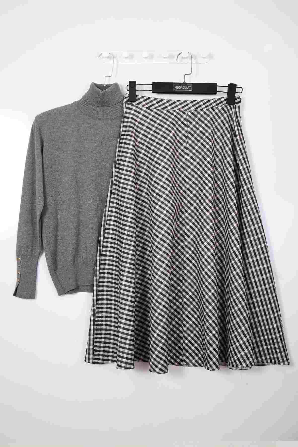 Ekose Desenli Çan Etek Siyah Gri