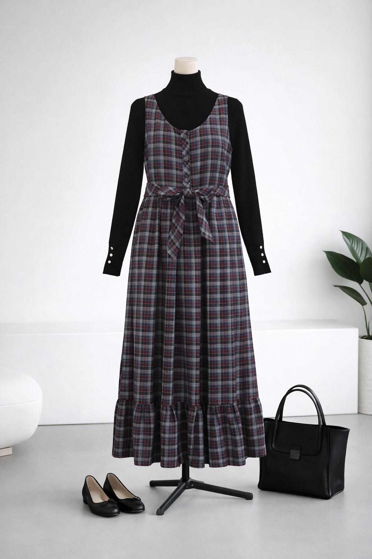 Ekoseli Parçalı Kendi Kumaşından Düğmeli Jile Bordo