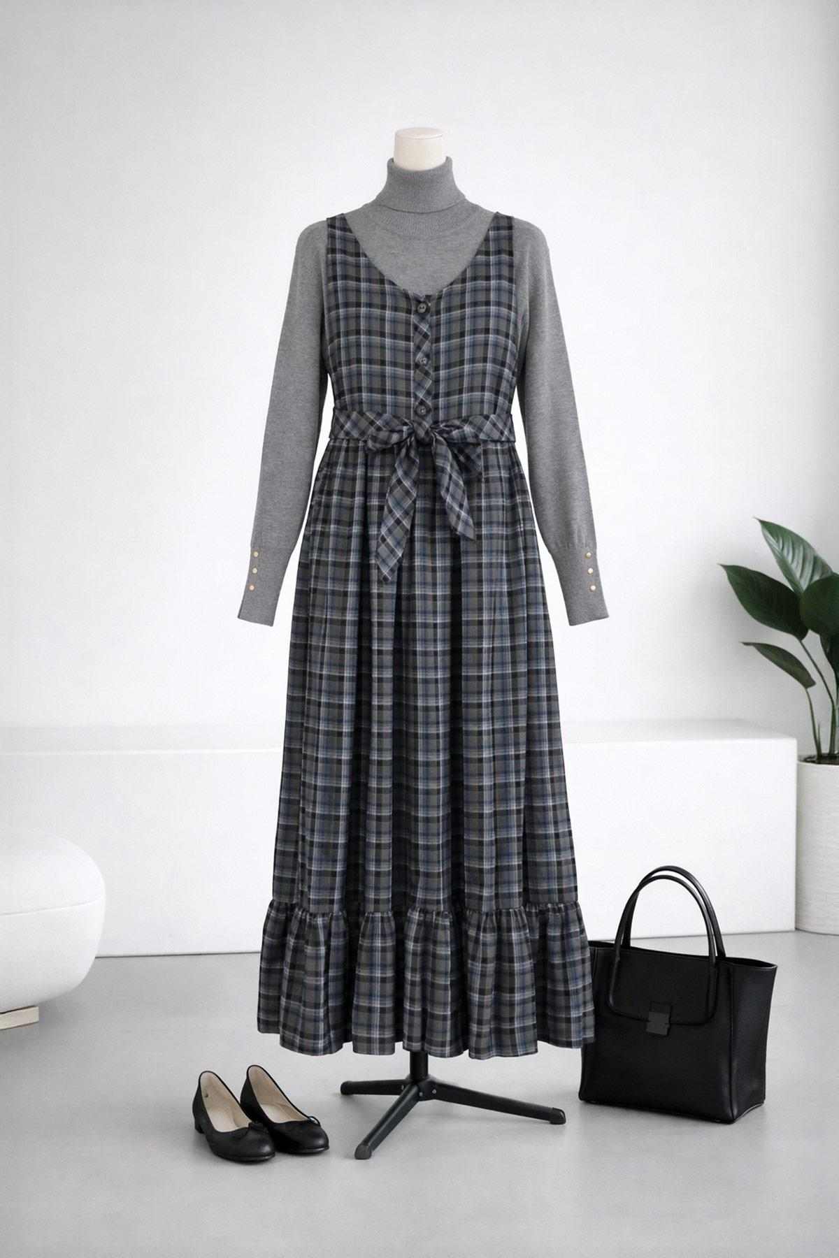 Ekoseli Parçalı Kendi Kumaşından Düğmeli Jile Yeşil