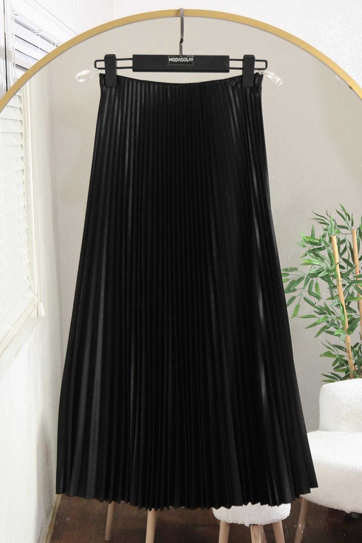 Elisa Beli Lastikli Pliseli Etek Siyah