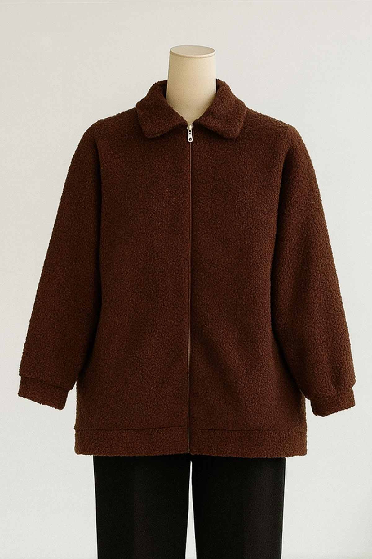Fermuarlı Yan Cepli Bebe Yaka Buklet Ceket Kahve