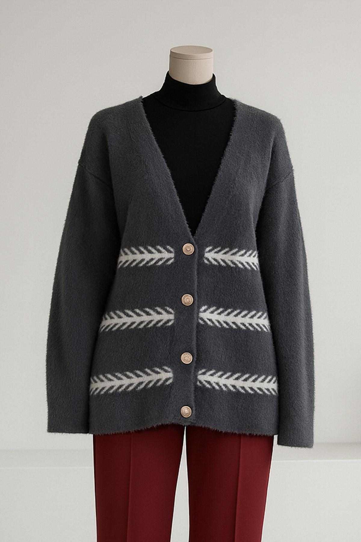 İnci Dört Düğmeli Yumoş Angora Hırka Füme