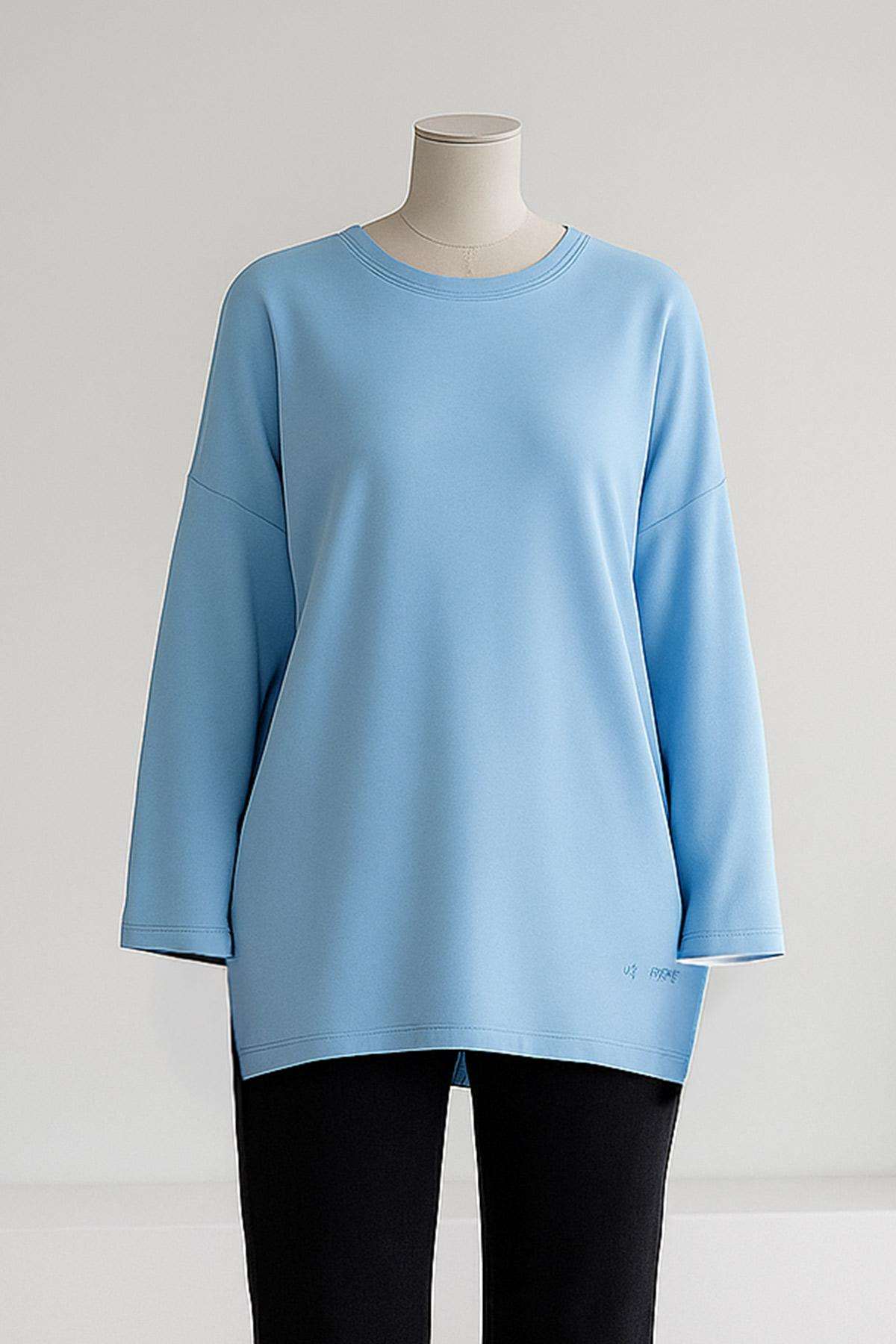 Kalp Nakışlı Yırtmaçlı Modal İkiip Tunik Bebe Mavi