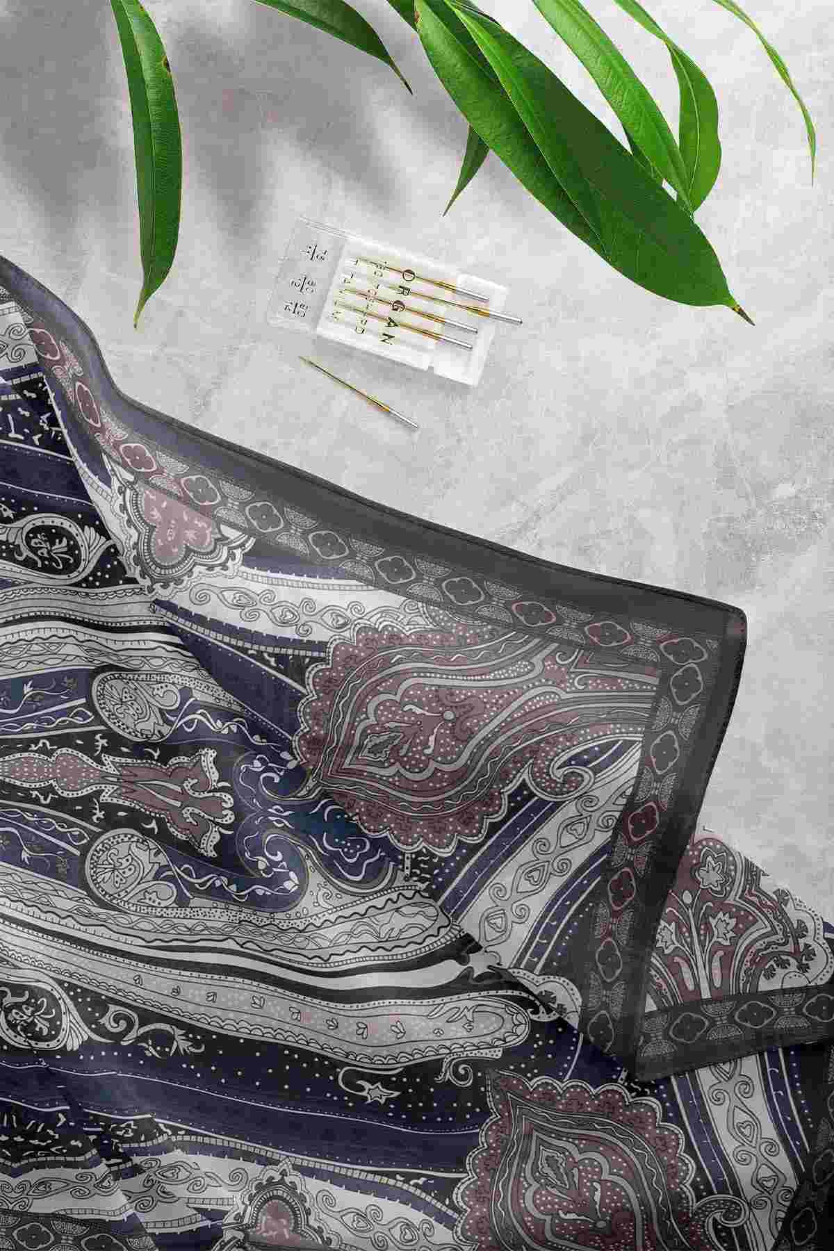 Kalp Zinciri Desenli Hint Şal Siyah Kahve