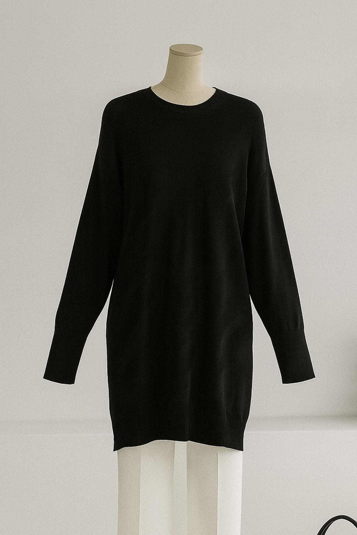 Kendinden Çapraz Desenli Sıfır Yaka Triko Tunik Siyah