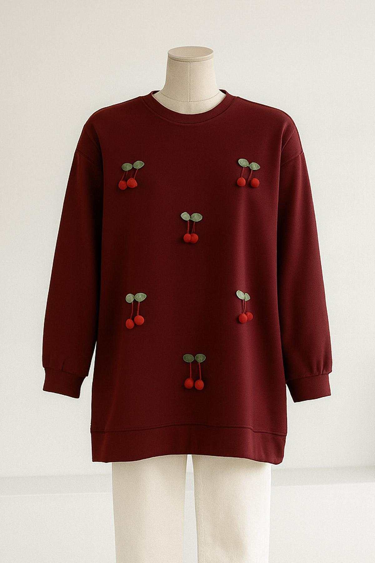Kiraz Aksesuarlı İki İplik Tunik Bordo