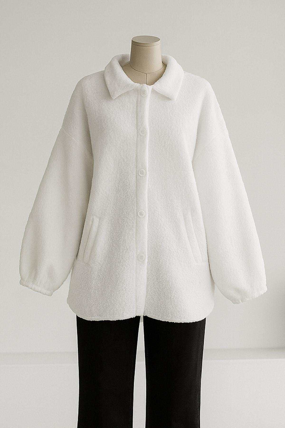 Kolucu Lastikli Çift Cepli Düğmeli Buklet Ceket Ekru
