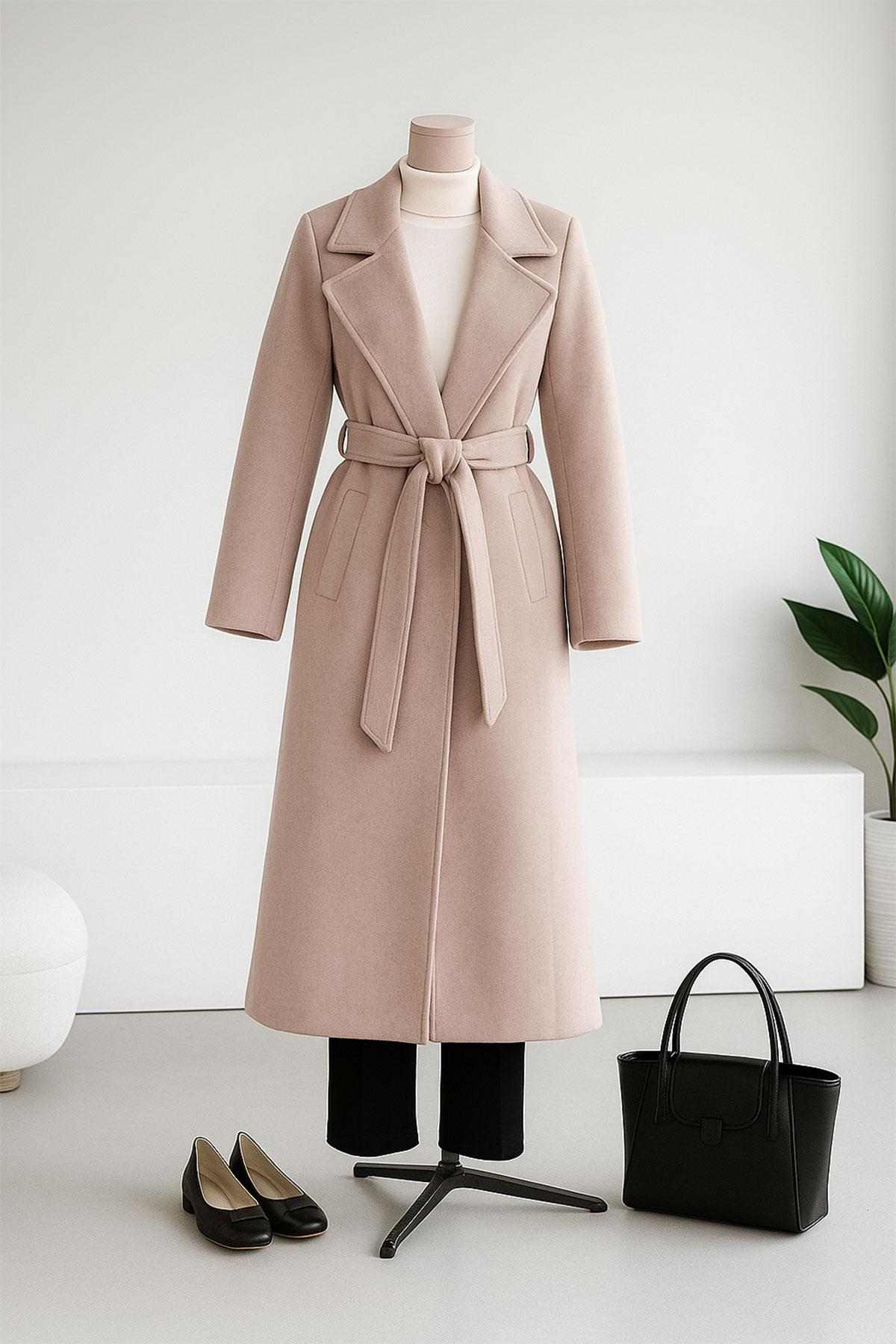 Kuşaklı Men Yaka Moskova Kaşe Kaban Vizon