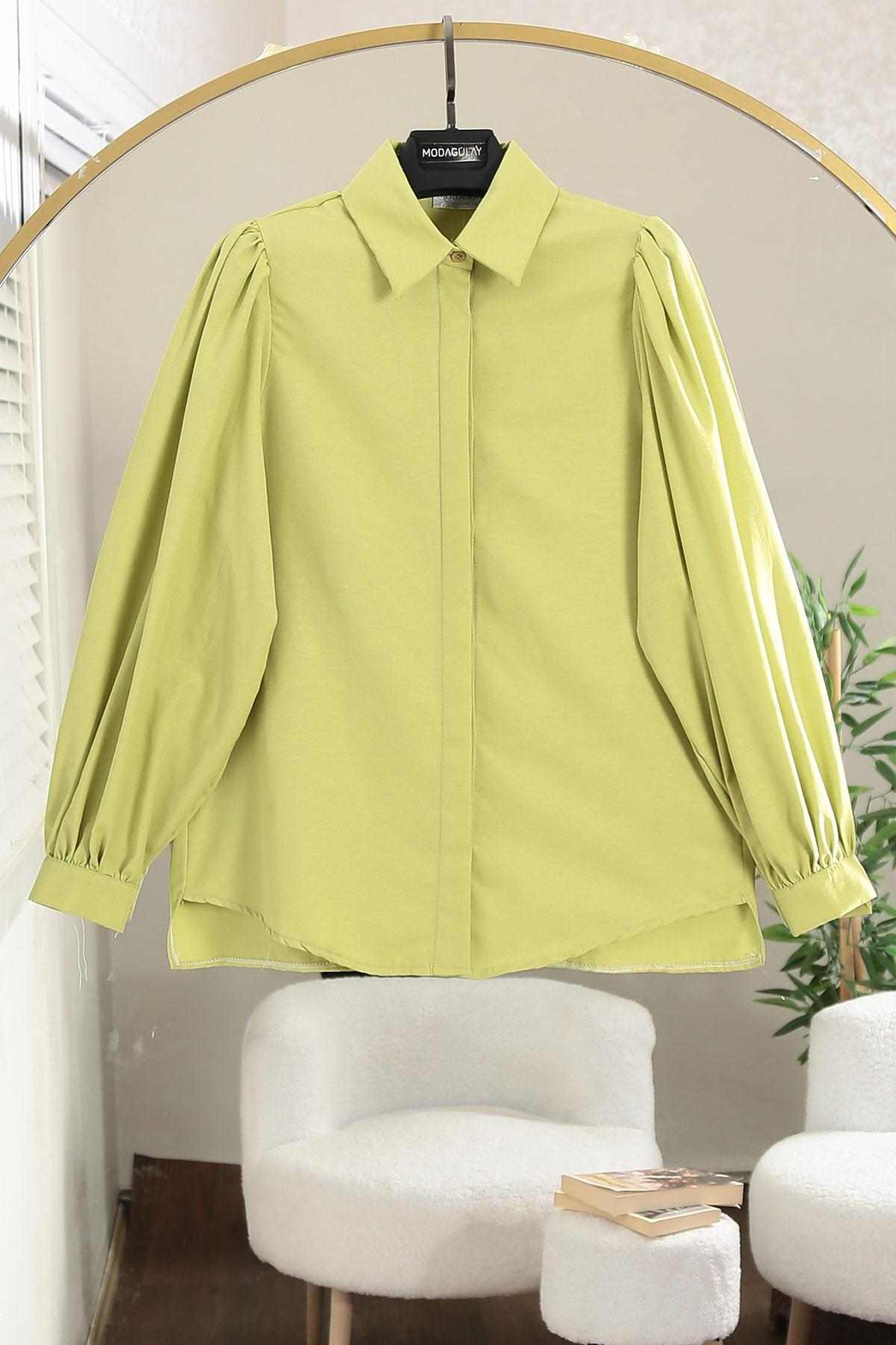 Omuzu Pileli Balon Kollu Poplin Gömlek Fıstık