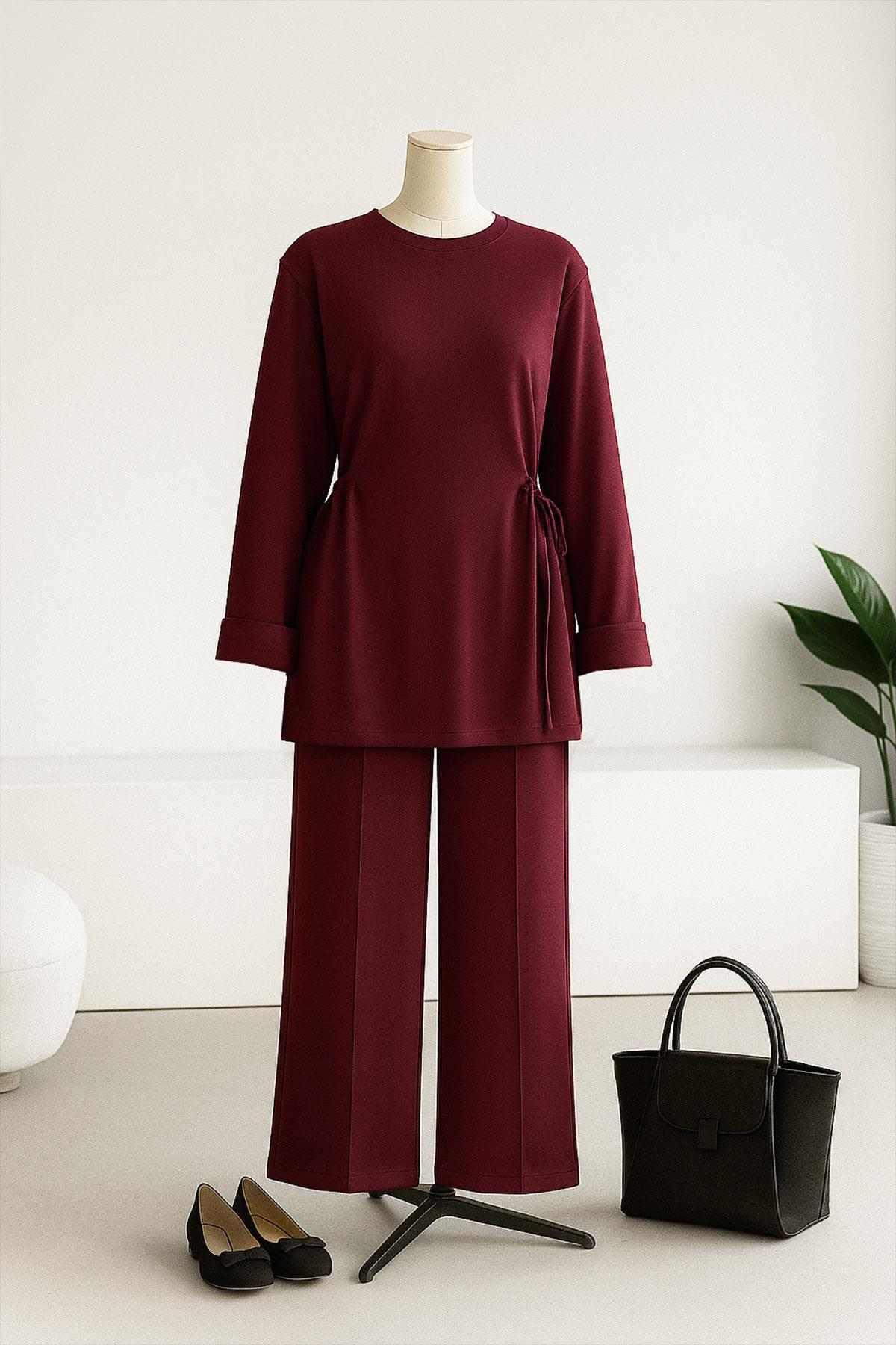 Önü V Bağlamalı Tünelli Pantolonlu Oysho Takım Mürdüm