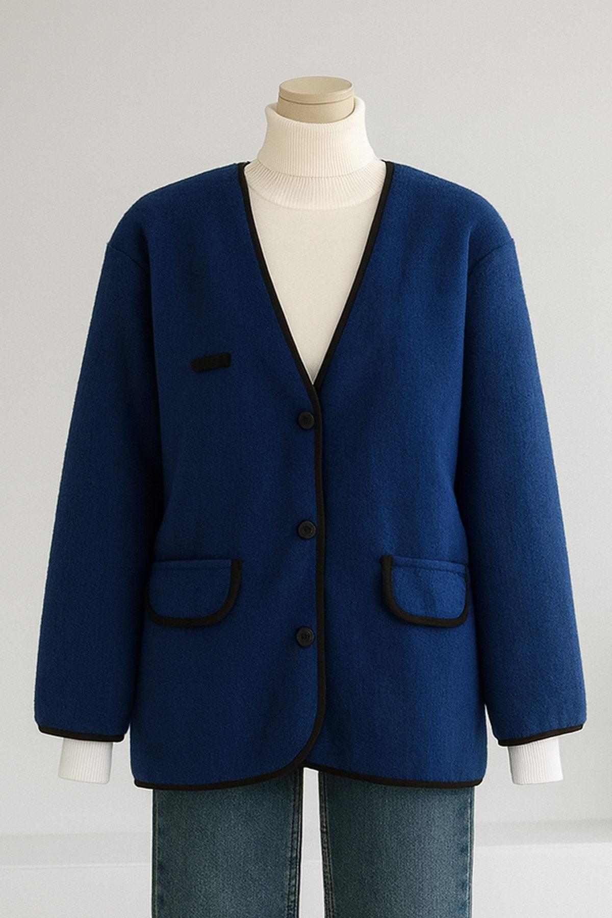 Oversze Çift Cep Kapaklı Biyeli Kaşe Ceket Saks