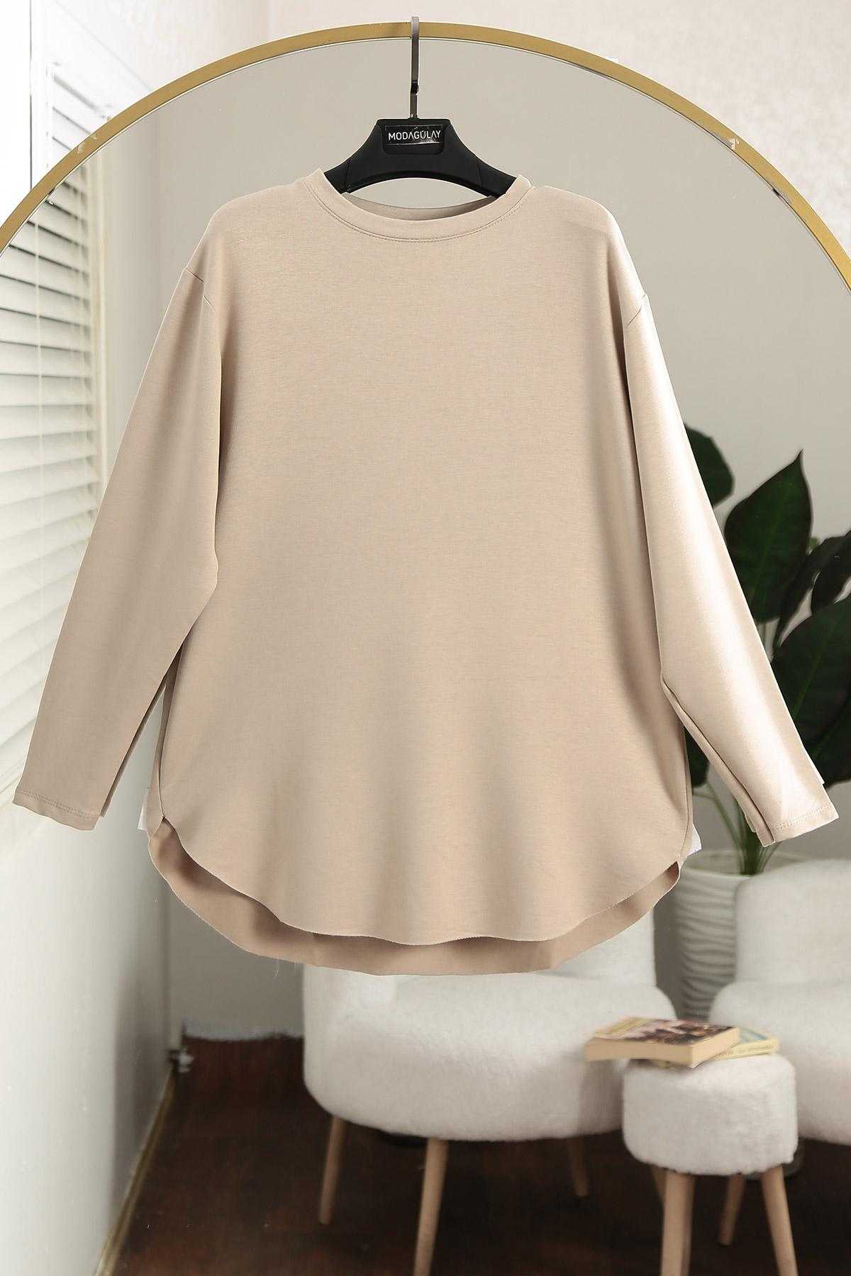 Sıfır Yaka Basıc Kristal Tunik Vizon