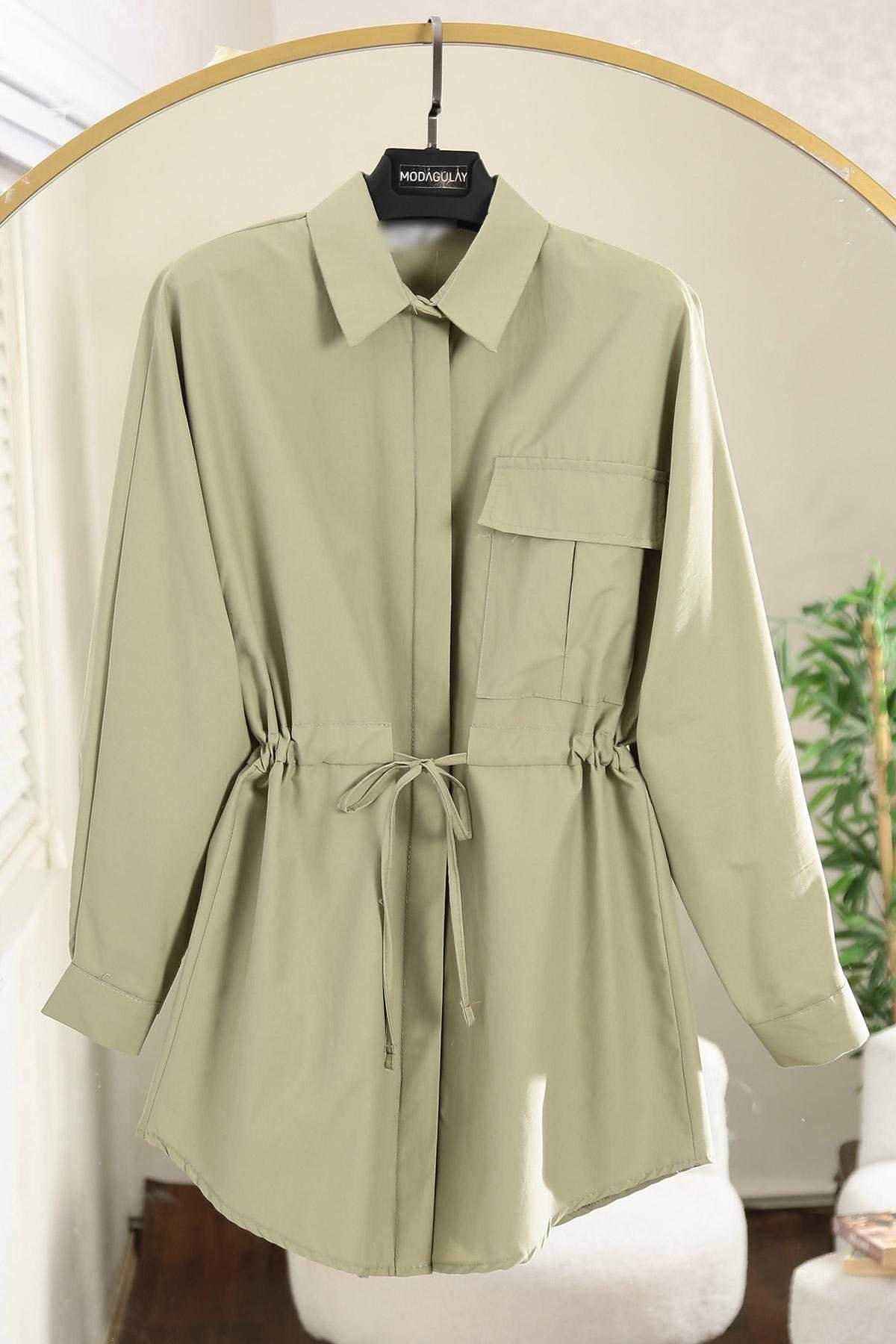 Tek Cepli Tünelli Bağlamalı Poplin Gömlek Adaçayı