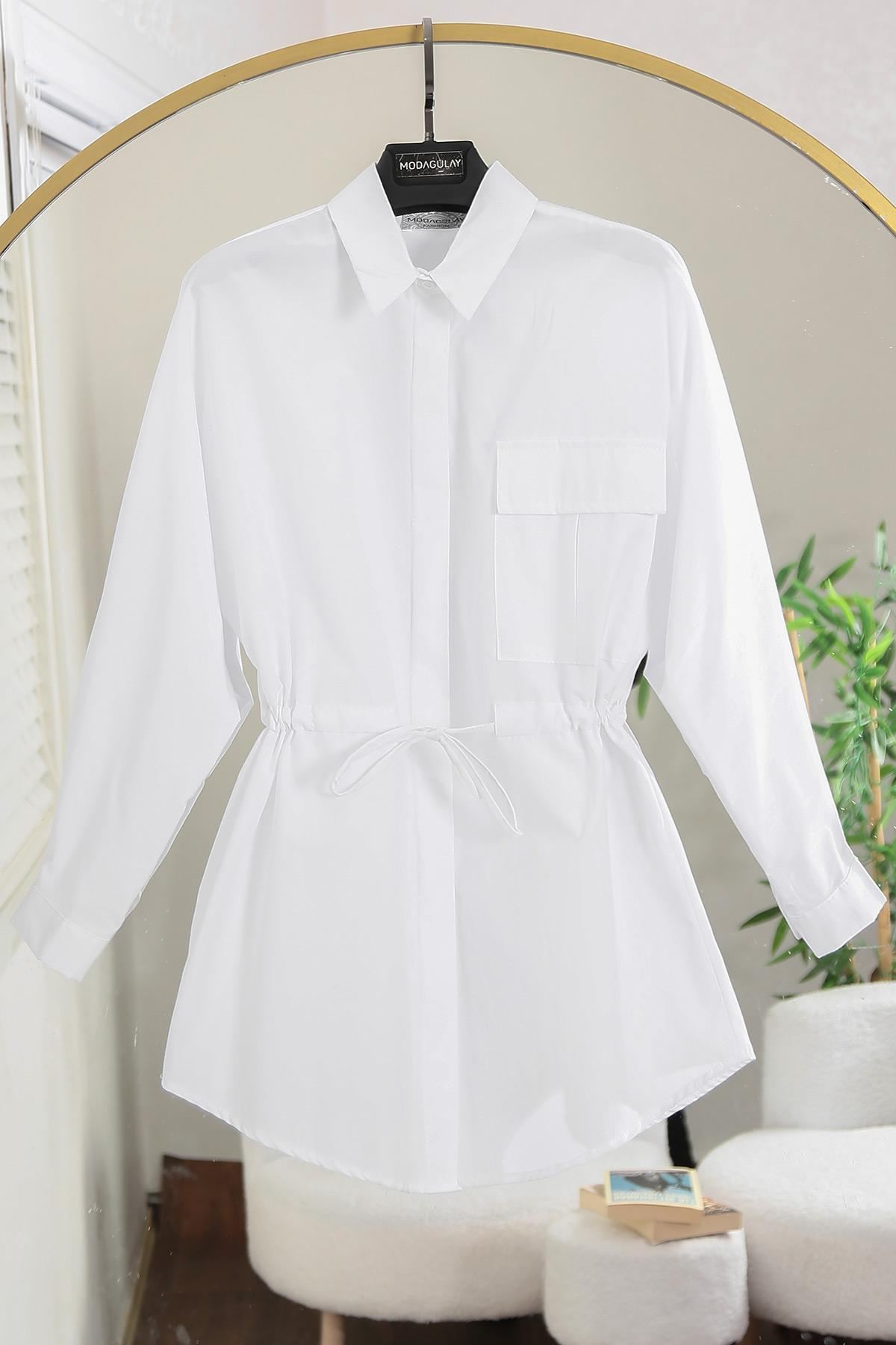Tek Cepli Tünelli Bağlamalı Poplin Gömlek Beyaz
