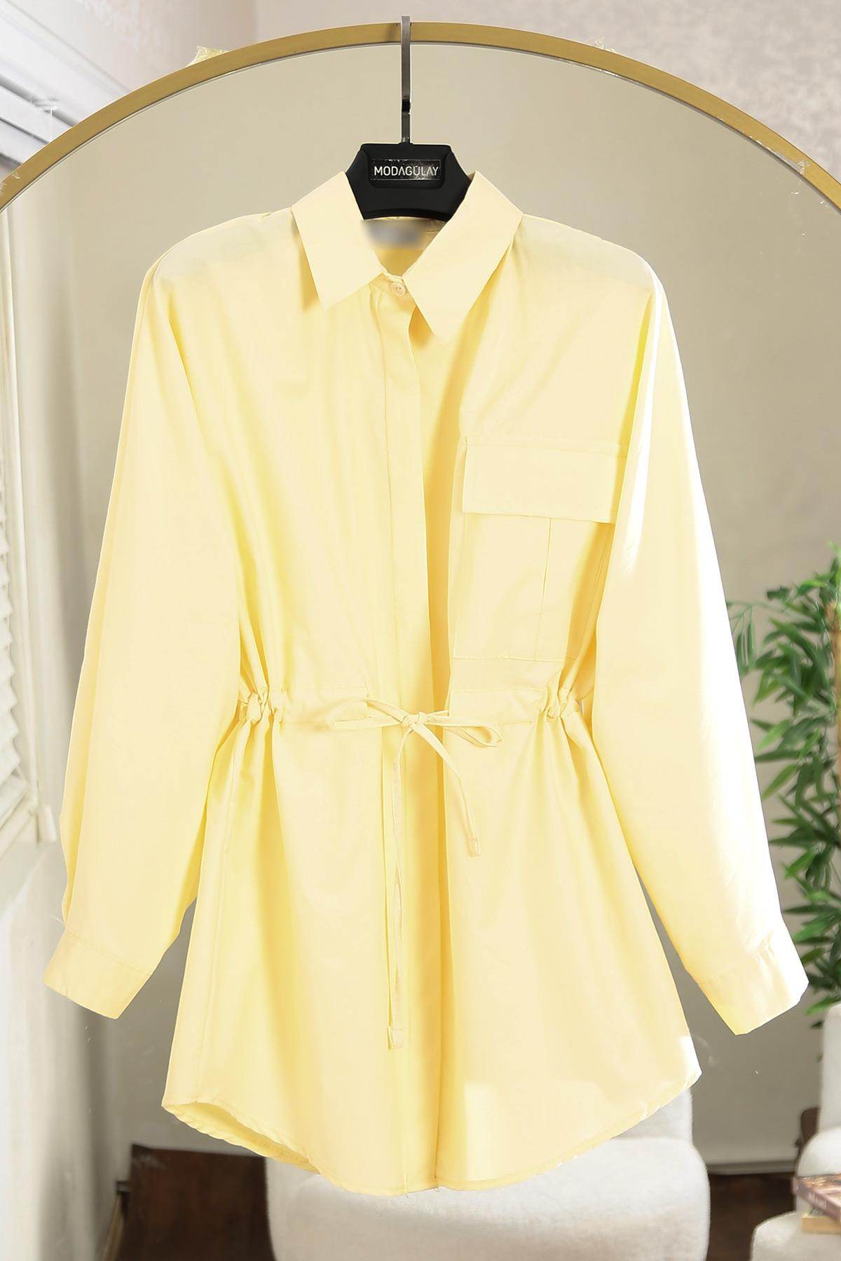 Tek Cepli Tünelli Bağlamalı Poplin Gömlek Sarı