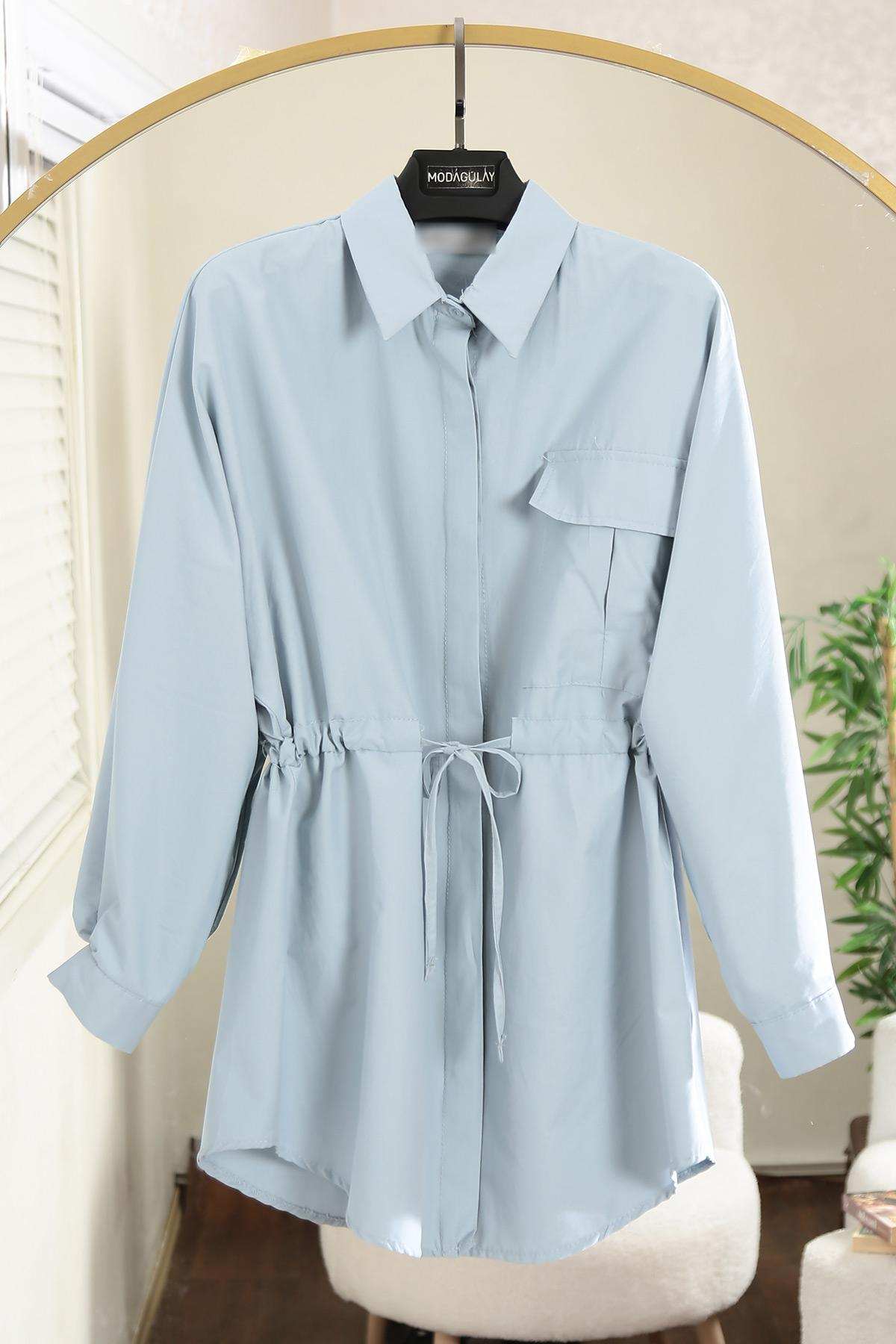 Tek Cepli Tünelli Bağlamalı Poplin Gömlek Soft Mavi