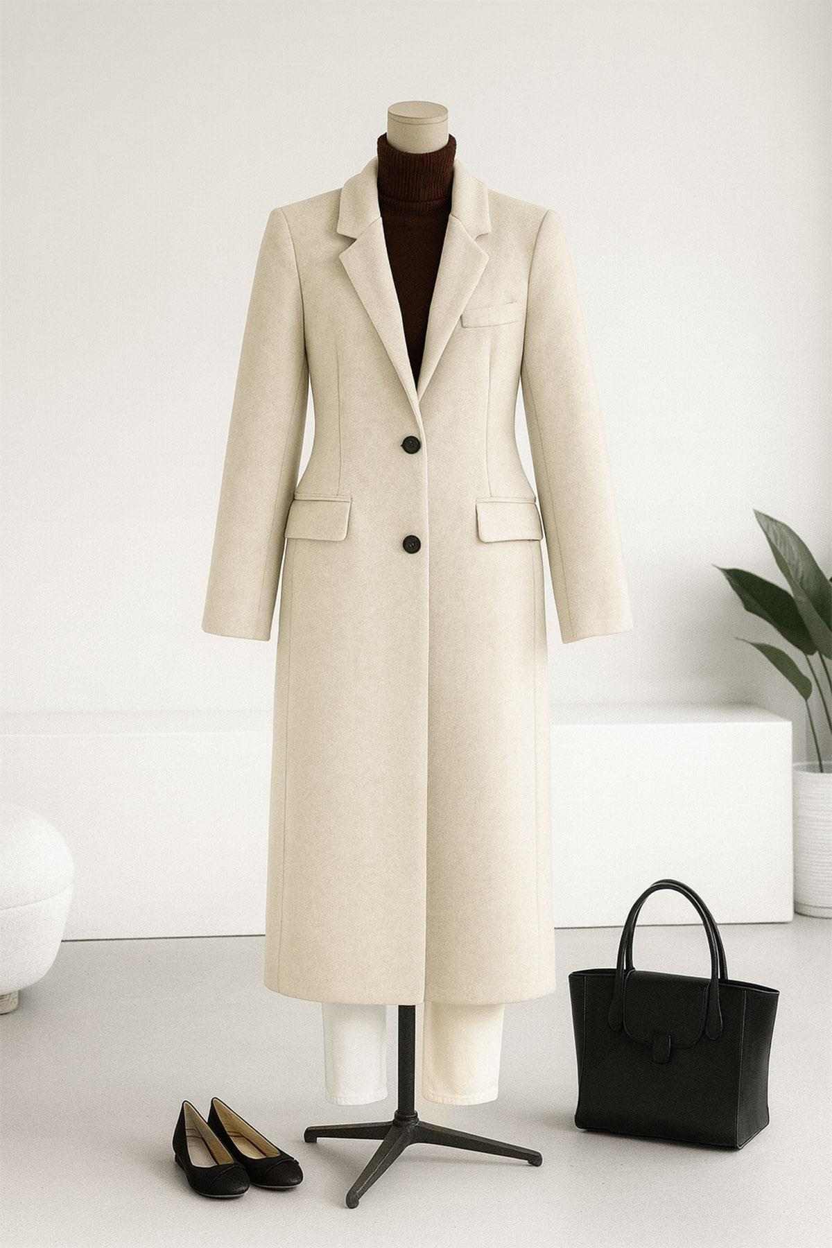 Üç Cep Detaylı Çift Düğmeli Kaşe Kaban Taş