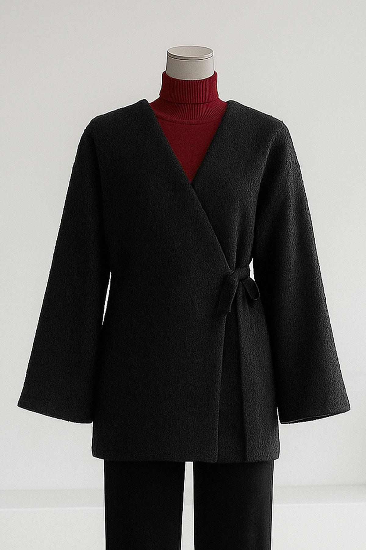 Sezon: Sonbahar-Kış Kumaş Özelliği: Buklet Beden Aralığı: Standart Numune Bedeni: Model Ölçüleri: Beden:38