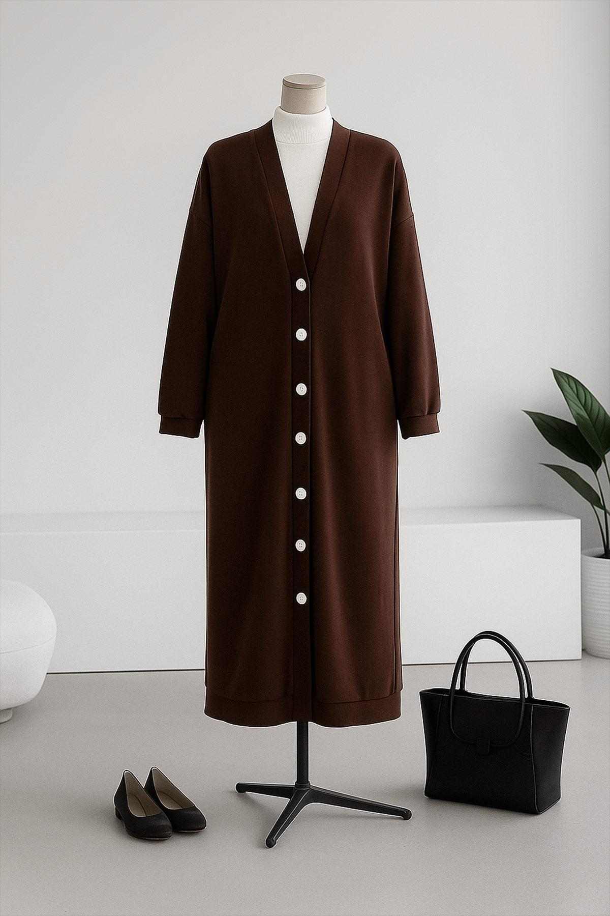 Yedi Düğmeli Selanik Uzun Hırka Kahve